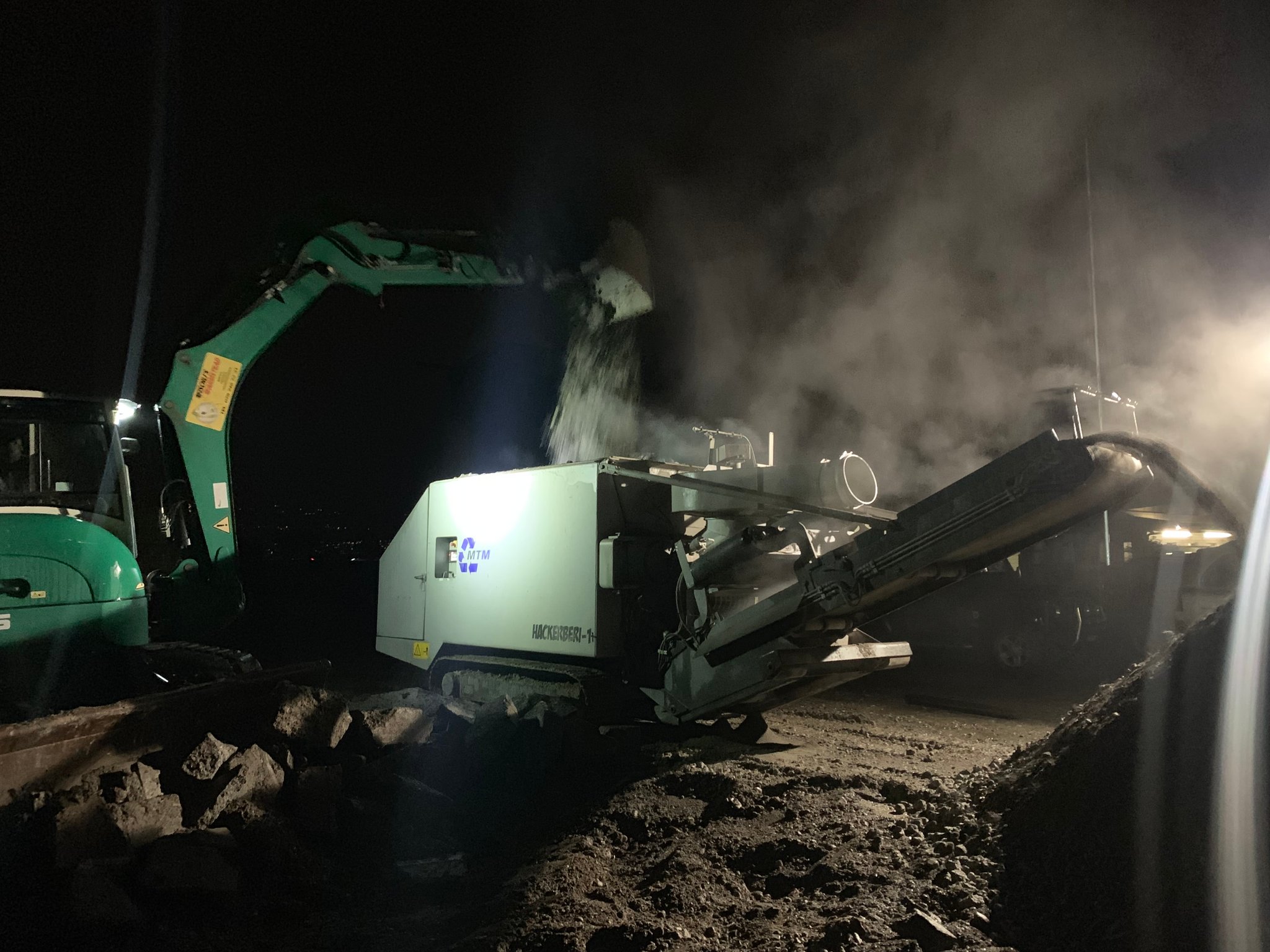 Beton, Betonbahnschwellen, Asphalt, Ziegel, Natursteine, Dachziegel, Fliesen, Abbruchholz, Wurzelstöcke, etc.